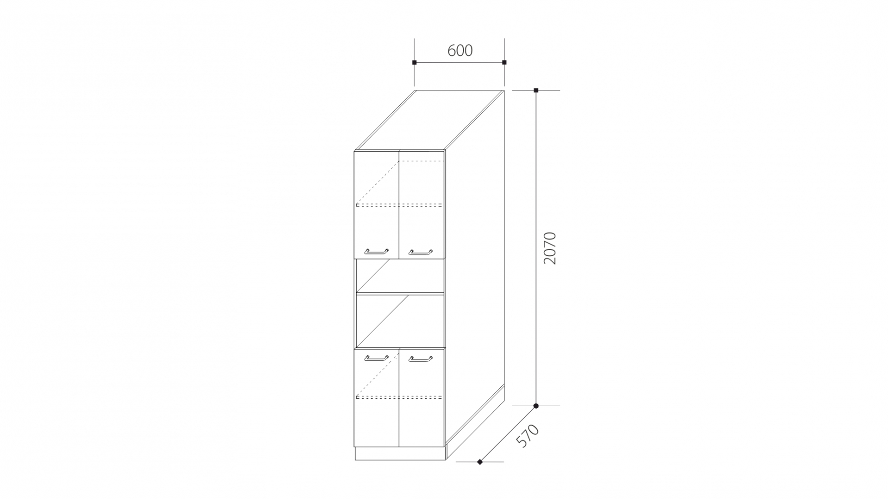 ВхШхГ: 2070х600х570 мм.